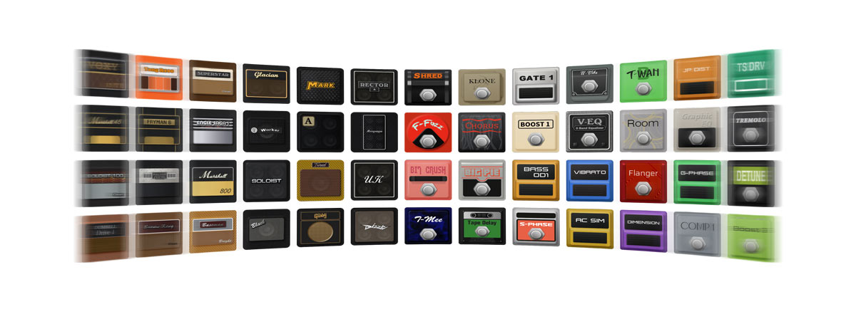 専用のコントロールアプリ「Pulze Editor(iOS / Android)」を使えば、自由にプリセットの編集ができ、好きなアンプやエフェクトをそれぞれ1つずつ選んで組み合わせることができます。
