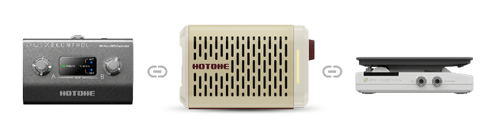 Pulze MiniをPulze Control(ワイヤレスMIDIフットスイッチ(別売)と組み合わせれば、ペダルボードスタイルのコントロールが可能です。プリセットの切り替え、エフェクトのオン/オフ、エクスプレッションペダルの接続など、ケーブルは一切不要です。