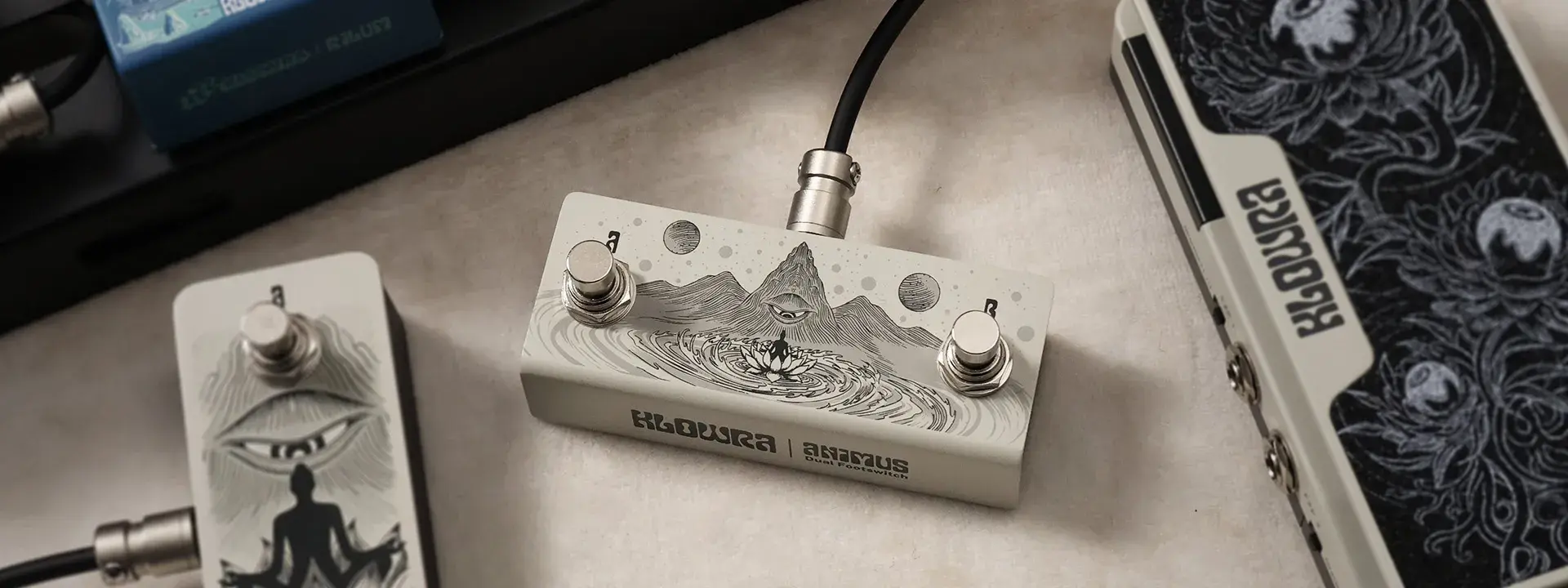 星空のようにボードを渡る足元の動きをイメージしたビジュアルと、KLOWRA × Hotone コラボによる実用性。配線の詳細や TRS MAP の設定は、印刷マニュアルおよび PDF 取扱説明書でご確認ください。