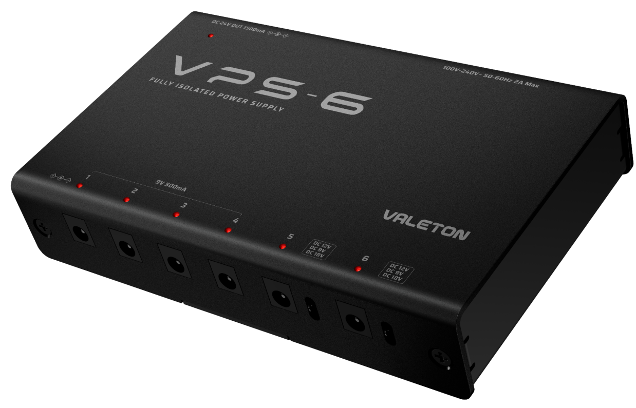 VPS-6 は、現代のミュージシャンの要求に応えるために設計された、非常に多用途で堅牢な高出力パワーサプライです。デュアルアイソレーションにより、最大 500mA を必要とする複数のエフェクターへ独立したクリーンな電力を供給します。